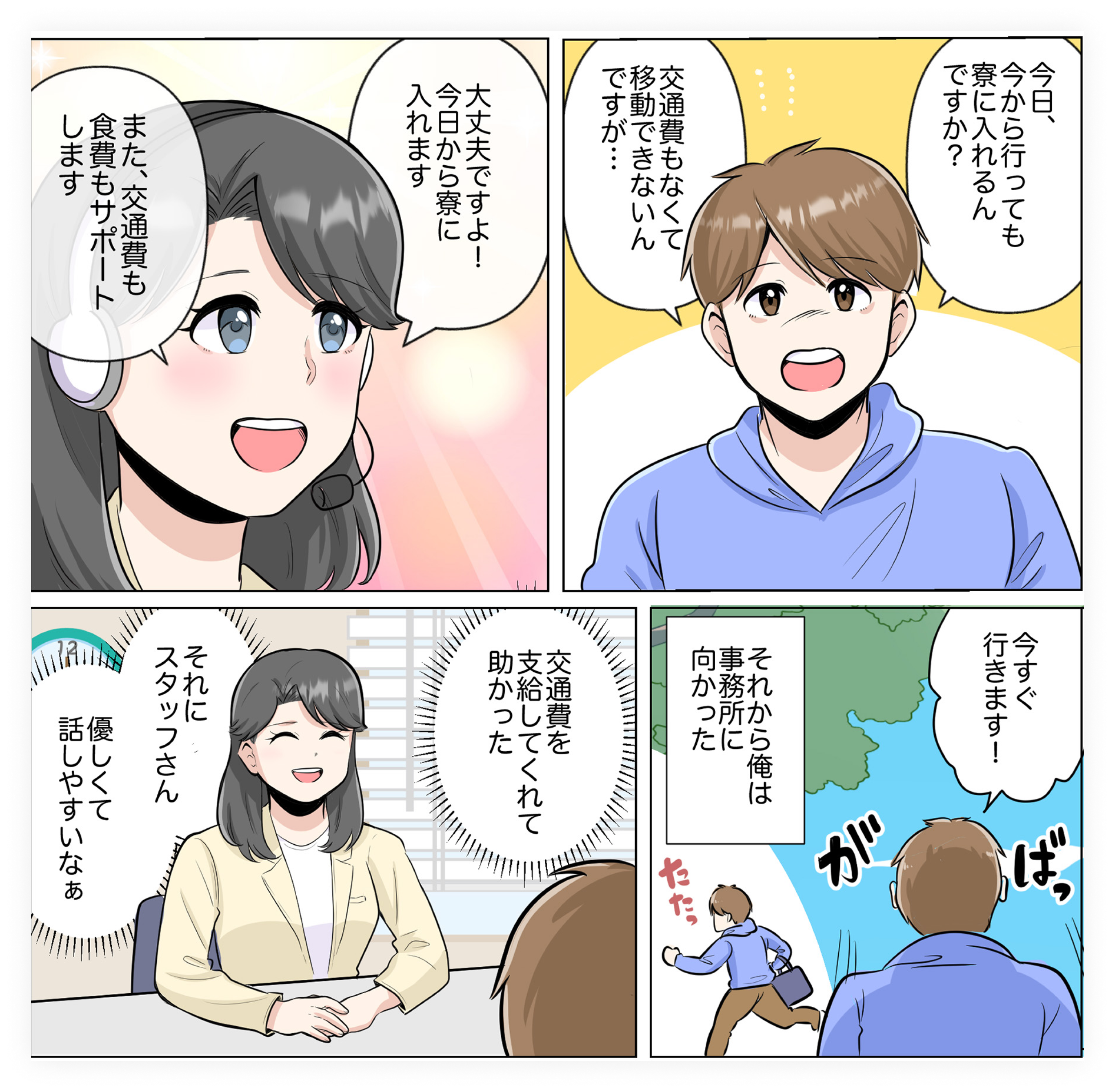 - 多くの会社だとサポート制度がないので、所持金0円だと入社までの生活が困窮することが多いです。