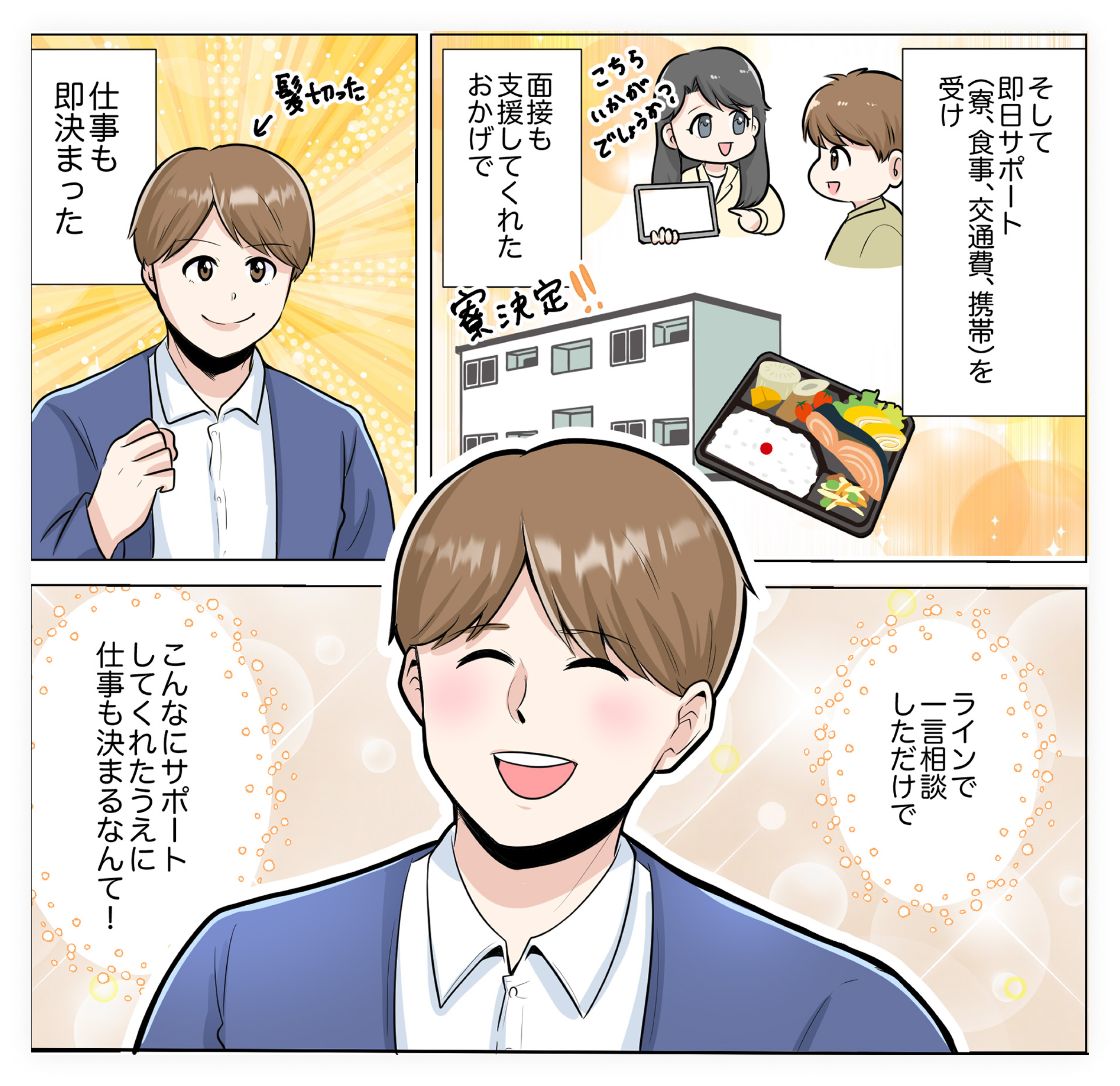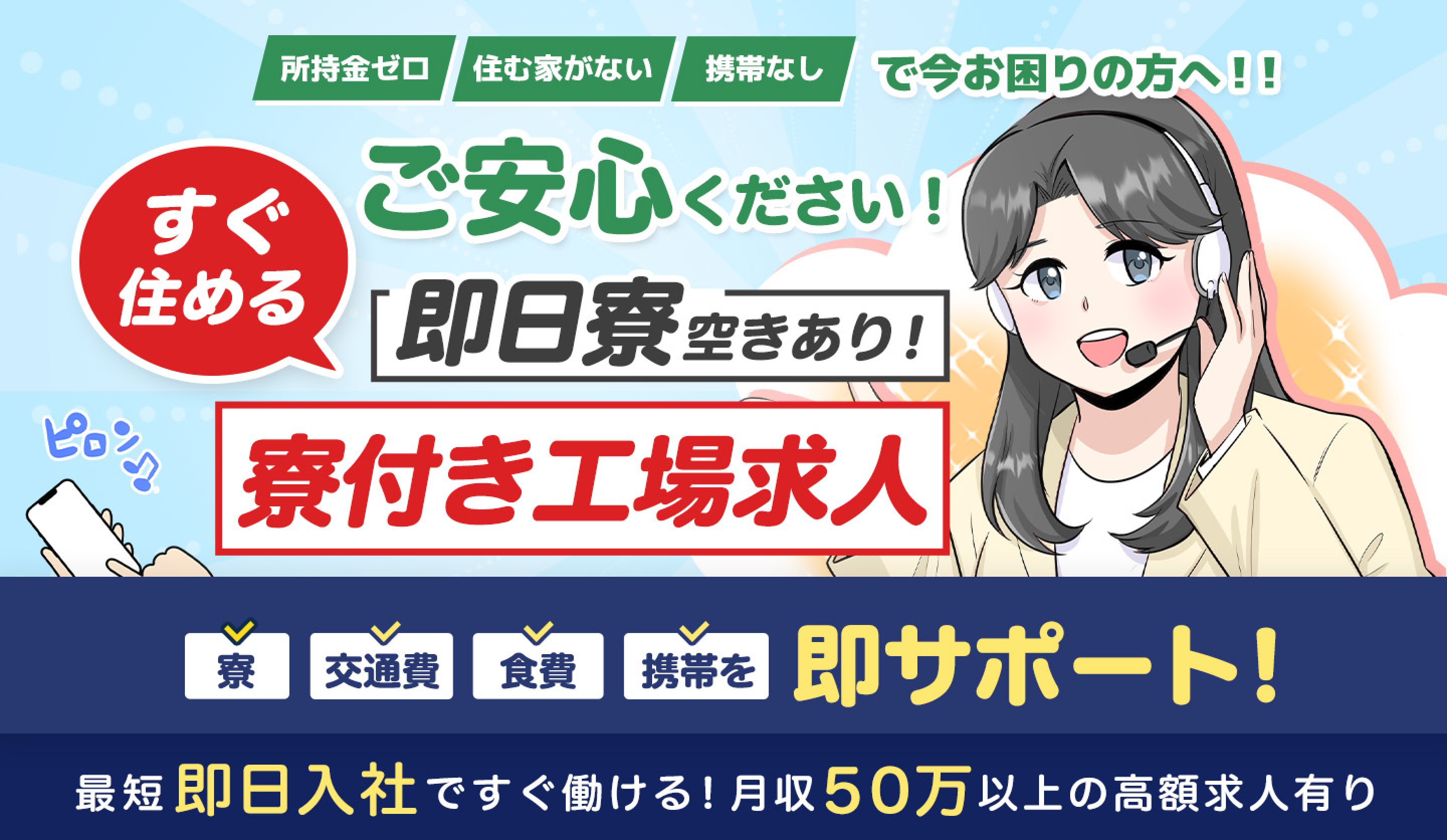 - ソクワークなら、”今日から”提携先の宿泊施設などで入寮までサポートが可能です。